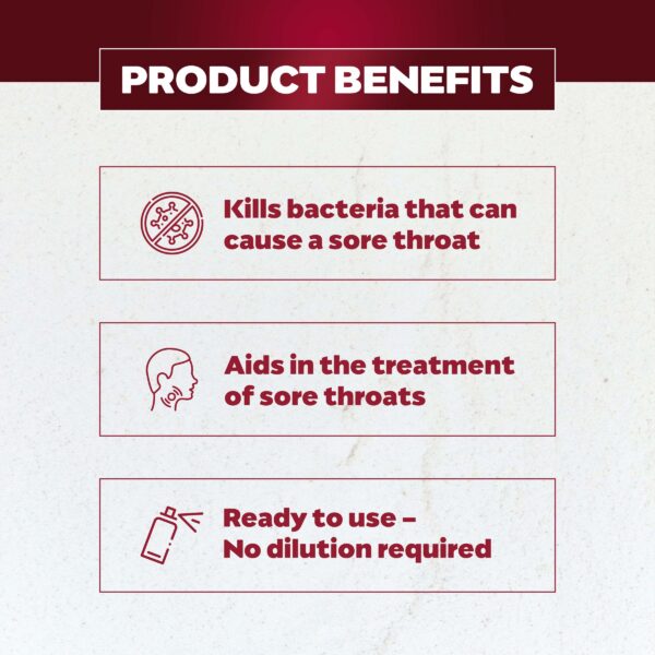 Betadine Ready to Use Sore Throat Gargle kills bacteria that may cause a sore throat and may be used as an aid in the treatment of sore throats. A convenient measure is included inside each pack to help ensure correct dosage. No dilution required.