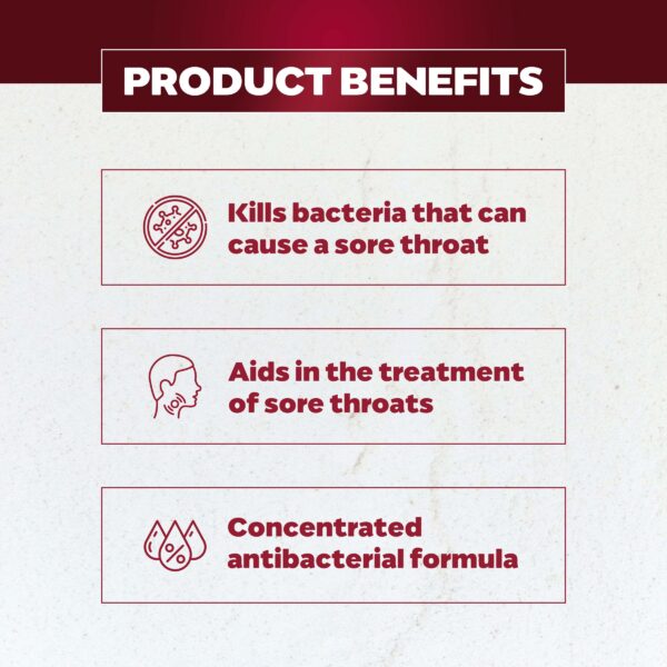 Betadine Sore Throat Gargle Concentrated is an antibacterial sore throat treatment.